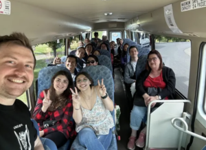 When it’s busy, we run more than one bus and will text you to choose which one you want. You can choose a bigger bus with about 20 people or a smaller van with 11 to 13. Generally though, just expect to be on the mini-bus with about 20 people.
